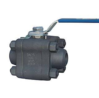 鍛鋼球閥有兩種設(shè)計(jì)形式.一種是二片式結(jié)構(gòu),其中部螺紋連接,并以PTFE墊片密封;另一種是三片式結(jié)構(gòu),中部用螺栓栓結(jié).根據(jù)所選的閥座與墊片/填料的材料不同,適應(yīng)不同的工作溫度和介質(zhì).