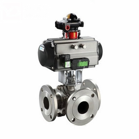 氣動(dòng)三通球閥是用于管道中介質(zhì)換向、合流及分流的作用,主要由T型或L型三通球閥與氣動(dòng)執(zhí)行器連接組成,按連接方式不同可分為法蘭及內(nèi)螺紋。氣動(dòng)三通L型球閥是對(duì)兩條相互垂直的通道進(jìn)行介質(zhì)流向的切換或截?cái)啵鸬椒峙渥饔?,而T型球閥不僅可對(duì)介質(zhì)流向進(jìn)行切換,還可以使三個(gè)通道互相連通或關(guān)閉其中任意一條通道,起到分流、合流作用??筛鶕?jù)工況需要,在氣動(dòng)三通球閥執(zhí)行器上加裝閥門定位器及其它相關(guān)配件,即可控*球閥球芯的運(yùn)轉(zhuǎn),達(dá)到對(duì)管路中介質(zhì)的自動(dòng)化控*。