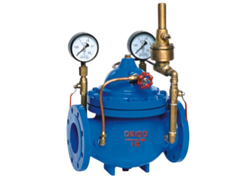 通過專門設(shè)計的導(dǎo)閥控制室,對壓力變化信號進行比較,輸出主閥開度信號,控制主閥開度,從而控制主閥的進出口壓差在設(shè)定值上。